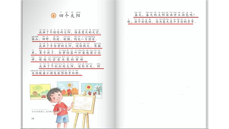 人教部编版一年级下册4 四个太阳集体备课ppt课件: 这是一份人教部编版一年级下册4 四个太阳集体备课ppt课件,共35页。PPT课件主要包含了高山果园田野,碧绿金黄火红,清凉香甜温暖等内容,欢迎下载使用。