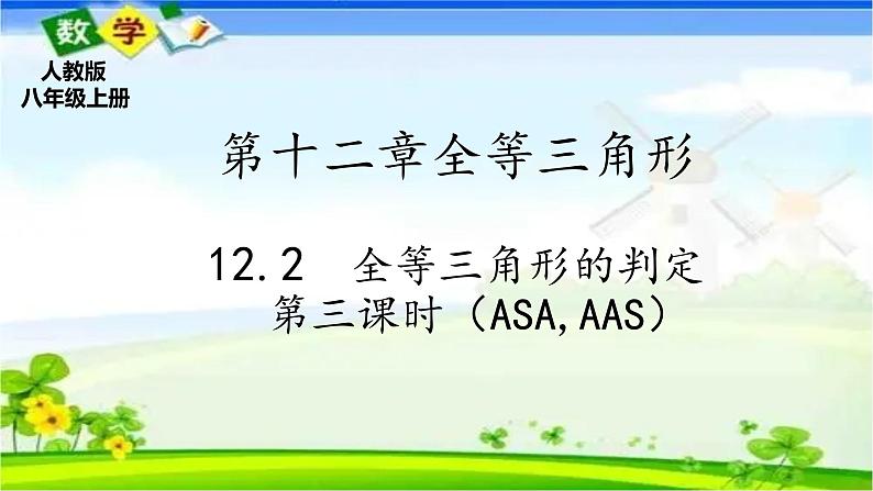 这是一份人教版八年级上册12.2 三角形全等的判定教课课件ppt,文件包含人教版八上122全等三角形的判定第三课时ASA和AAS课件pptx、人教版八上122全等三角形的判定第三课时ASA和AAS练习题docx、人教版八上122全等三角形的判定第三课时ASA和AAS教案docx等3份课件配套教学资源,其中PPT共19页, 欢迎下载使用。