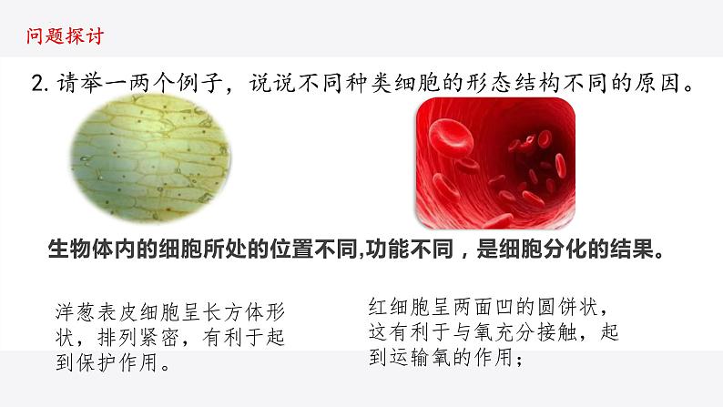 2.请举一两个例子,说说不同种类细胞的形态结构不同的原因。
