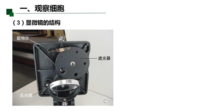 这是一份高中生物人教版 (2019)必修1《分子与细胞》第1章 走近细胞第2节 细胞的多样性和统一性备课ppt课件,共24页。PPT课件主要包含了细胞具有统一性,观察细胞,转换器,载物台,遮光器,反光镜,粗准焦螺旋,细准焦螺旋,通光孔,压片夹等内容,欢迎下载使用。