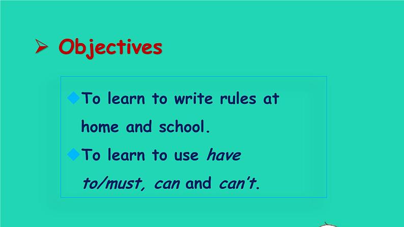 T learn t write rules at hme and schl. T learn t use have t/must, can and can’t.