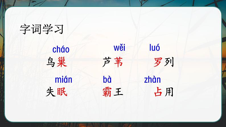 鸟巢 芦苇 罗列 失眠 霸王 占用