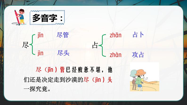 尽(jǐn)管已经疲惫不堪,他们还是决定走到沙漠的尽(jìn)头一探究竟。
