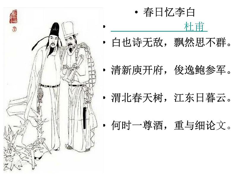 春日忆李白 杜甫 白也诗无敌,飘然思不群。