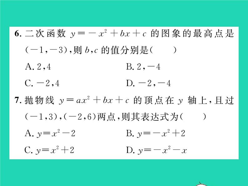 - 2022九年级数学下册第26章二次函数26.2二次函数的图象与性质26.2.2二次函数y=ax2 bx c的图象性质第4课时二次函数y=ax2 bx c的图象与性质习题课件新版华东师大版 课件 0 次下载