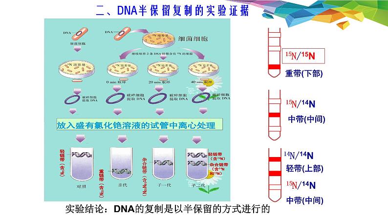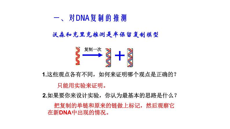 2.半保留复制:形成的分子 一半是新的,一半是旧的;