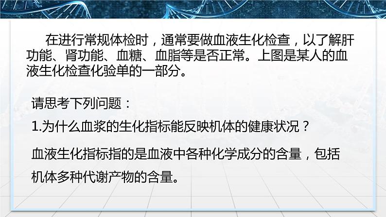 请思考下列问题:1.为什么血浆的生化指标能反映机体的健康状况?