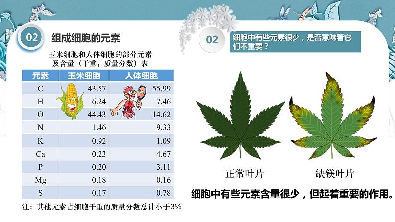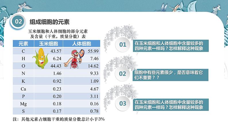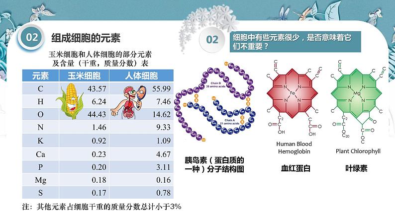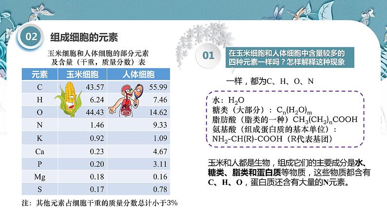 玉米细胞和人体细胞的部分元素及含量(干重,质量分数)表