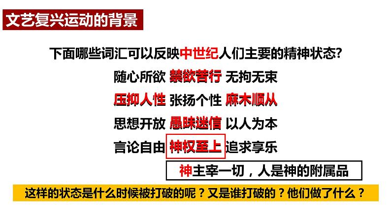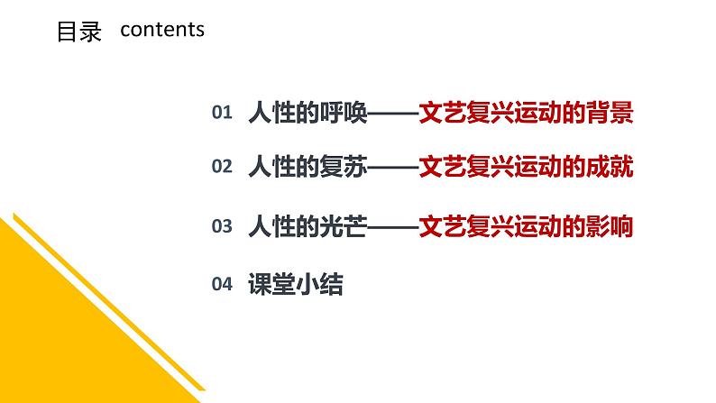 展开人教部编版九年级上册第14课 文艺复兴运动课文ppt课件: 这是一份人教部编版九年级上册第14课 文艺复兴运动课文ppt课件,共19页。PPT课件主要包含了快速对答案等内容,欢迎下载使用。