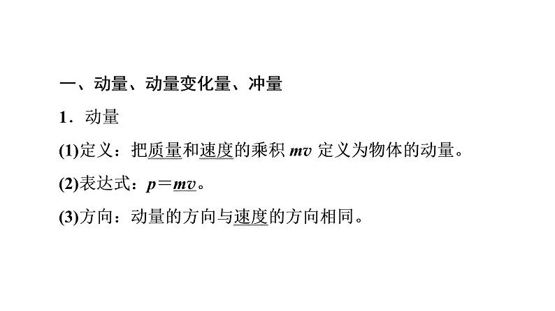 鲁科版高考物理一轮总复习第9章第1讲动量和动量定理教学课件