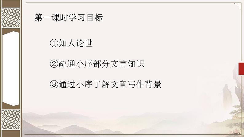 ①知人论世②疏通小序部分文言知识③通过小序了解文章写作背景