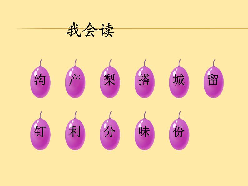 这是一份人教部编版二年级上册11 葡萄沟说课课件ppt,共24页。PPT课件主要包含了我会读,葡萄沟,搭凉棚,维吾尔族,吃个够,吐鲁番,七八月,八九月份,你知道吗,葡萄种得多等内容,欢迎下载使用。