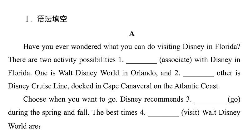 这是一份人教版高考英语一轮总复习课时质量评价19 选择性必修第一册 UNIT 3 FASCINATING PARKS课件,共48页。PPT课件主要包含了A组·基础巩固,B组·能力提升等内容,欢迎下载使用。