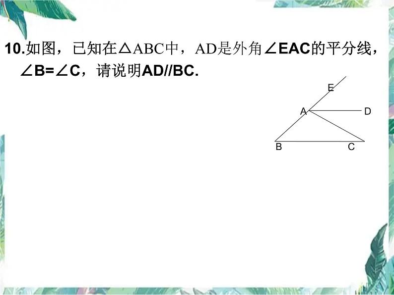 10.如图,已知在△ABC中,AD是外角∠EAC的平分线,∠B=∠C,请说明AD//BC.