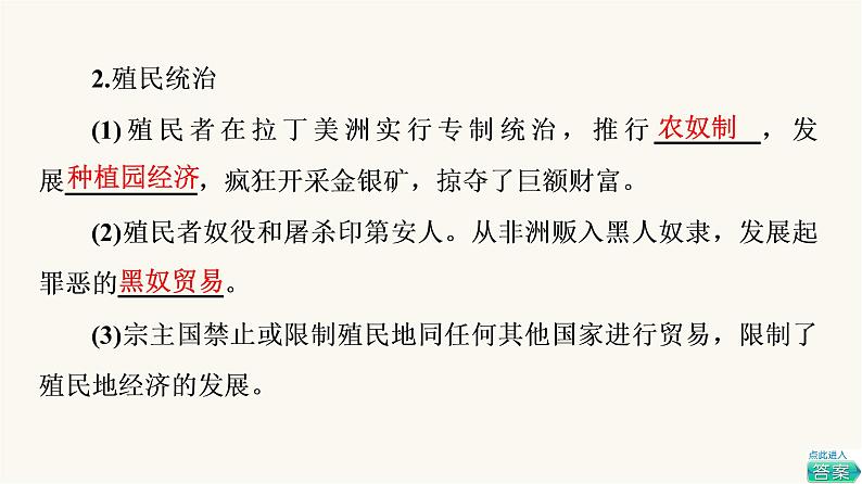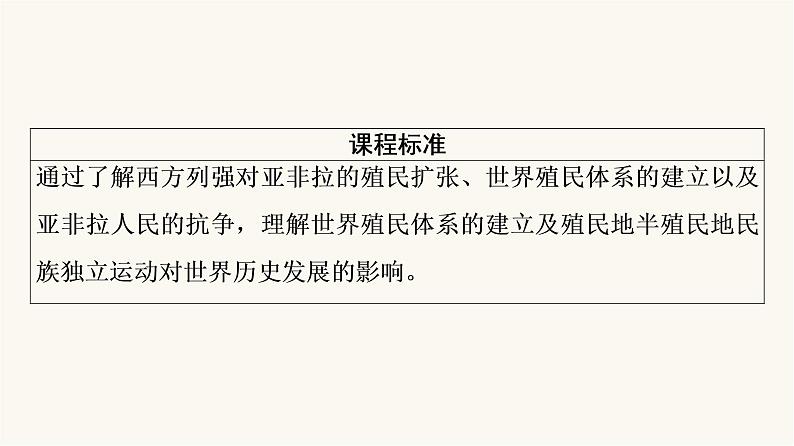 这是一份2024届高考历史一轮总复习必修中外历史纲要下第六单元第12课资本主义世界殖民体系的形成课件,共28页。PPT课件主要包含了单元知识概览,第12课,农奴制,印第安人,菲律宾,奥斯曼帝国,1北非,阿尔及利亚,再去占领,势力范围等内容,欢迎下载使用。