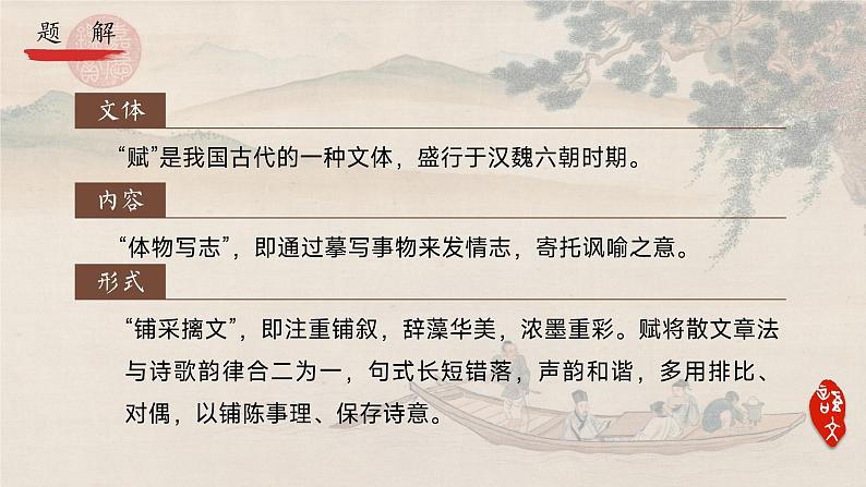 “赋”是我国古代的一种文体,盛行于汉魏六朝时期。