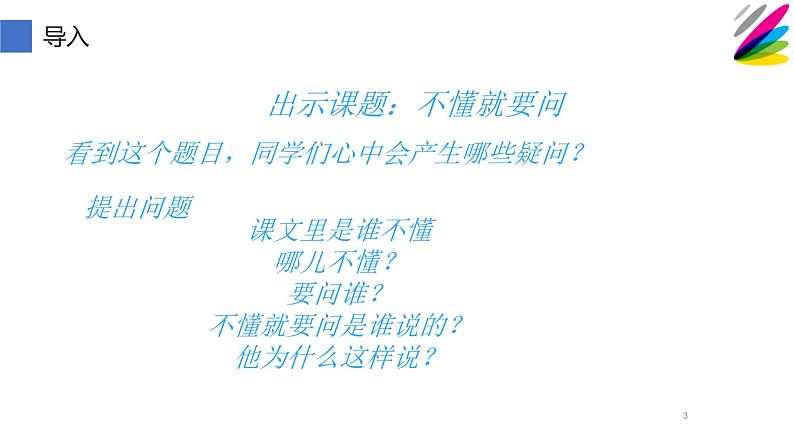 语文三年级上册不懂就要问优质课ppt课件: 这是一份语文三年级上册不懂就要问优质课ppt课件,文件包含部编版语文三年级上册-3不懂就要问第1课时课件pptx、部编版语文三年级上册-3不懂就要问第2课时课件pptx、部编版语文三年级上册-3不懂就要问教案doc等3份课件配套教学资源,其中PPT共40页, 欢迎下载使用。
