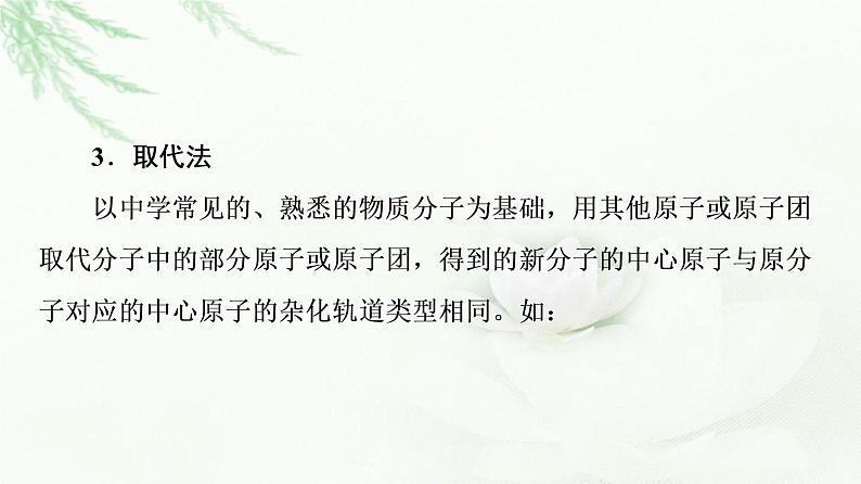 高中化学人教版 (2019)选择性必修2第二章 分子结构与性质第二节 分子的空间结构教课内容ppt课件: 这是一份高中化学人教版 (2019)选择性必修2第二章 分子结构与性质第二节 分子的空间结构教课内容ppt课件,文件包含人教版高中化学选择性必修2第2章第2节基础课时7杂化轨道理论简介课件ppt、人教版高中化学选择性必修2第2章第2节基础课时7杂化轨道理论简介学案doc等2份课件配套教学资源,其中PPT共43页, 欢迎下载使用。