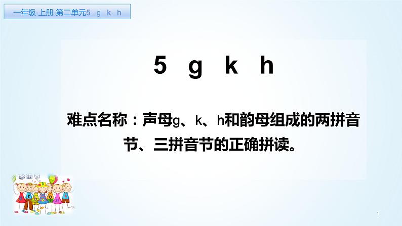 人教部编版一年级上册汉语拼音5 g k h图文ppt课件: