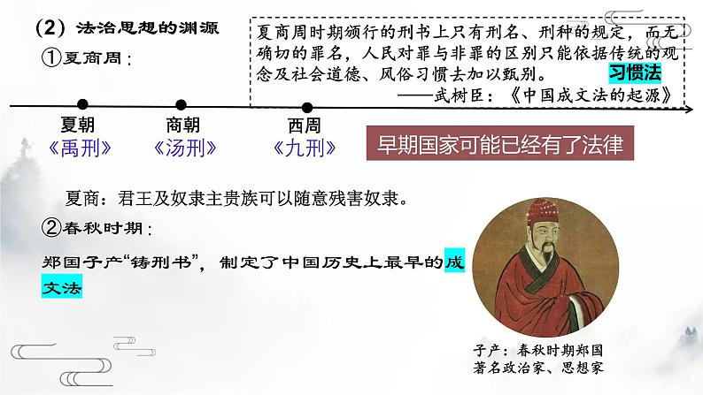 (1)秦朝:以法家思想治国,推动了律的编纂