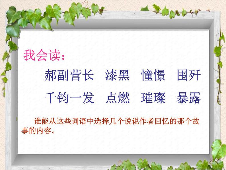 谁能从这些词语中选择几个说说作者回忆的那个故事的内容。