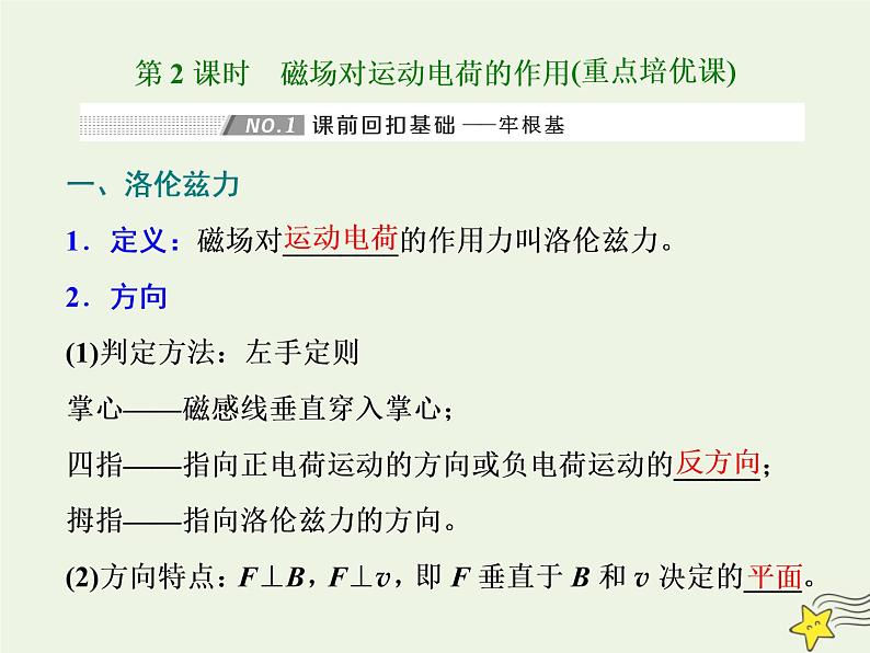展开江苏版高考物理一轮复习第9章第2节磁场对运动电荷的作用课件: 这是一份江苏版高考物理一轮复习第9章第2节磁场对运动电荷的作用课件,共60页。PPT课件主要包含了链接教材·夯基固本,细研考点·突破题型等内容,欢迎下载使用。