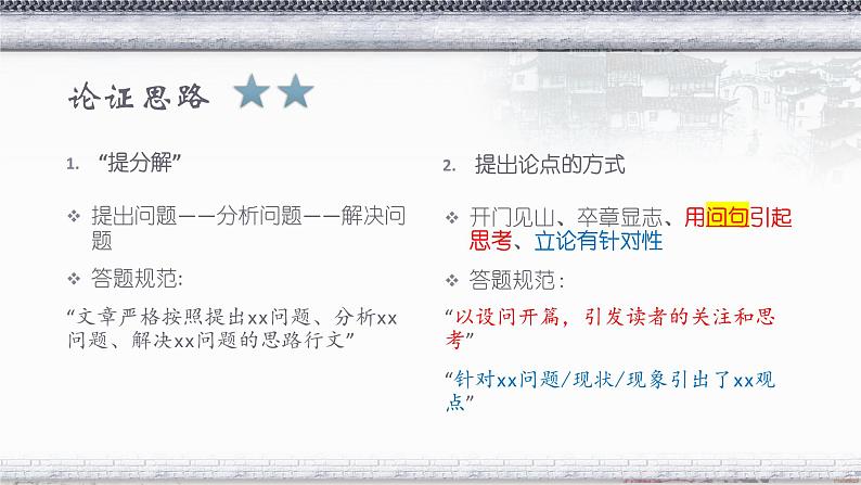 2023届高考语文复习:论述类文本主观题之论证特点课件: