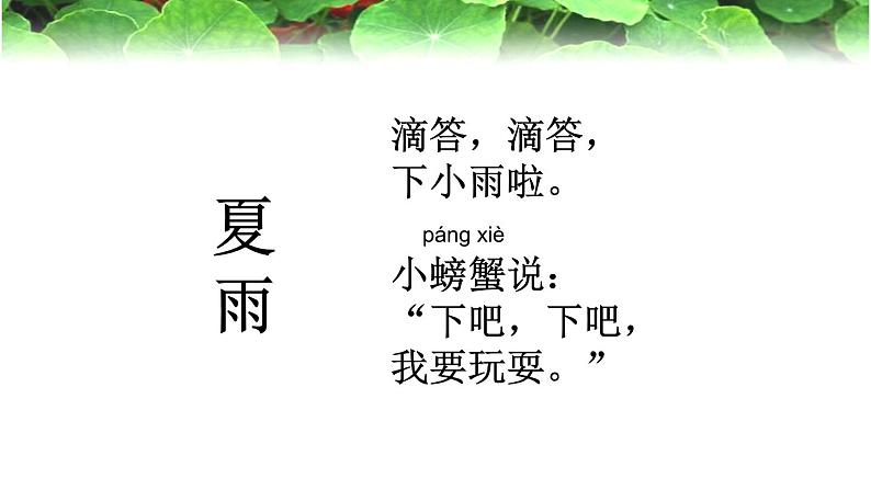 下雨了,下雨了,我们开场写诗啦!三四片荷叶,七八朵荷花,无数个小作家