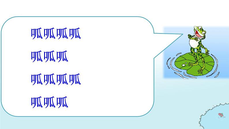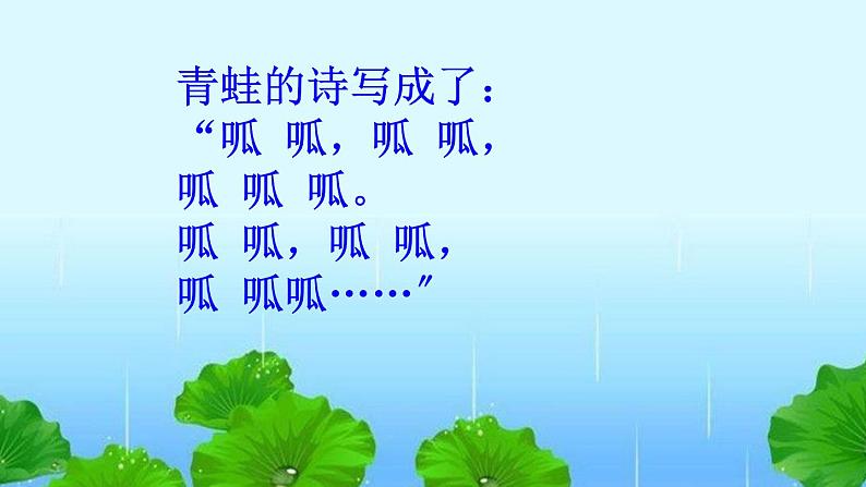 青蛙的诗写成了:“呱 呱,呱 呱,呱 呱 呱。呱 呱,呱 呱,呱 呱呱……〞