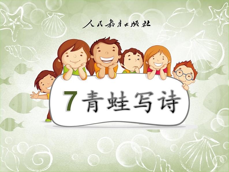 小学语文人教部编版一年级上册7 青蛙写诗教课内容课件ppt: 这是一份小学语文人教部编版一年级上册7 青蛙写诗教课内容课件ppt,共10页。PPT课件主要包含了一串水珠,青蛙写诗,水泡像句号,一串水珠像省略号,蝌蚪像逗号等内容,欢迎下载使用。