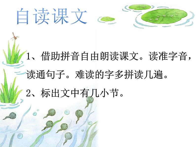 1、借助拼音自由朗读课文。读准字音,读通句子。难读的字多拼读几遍。2、标出文中有几小节。
