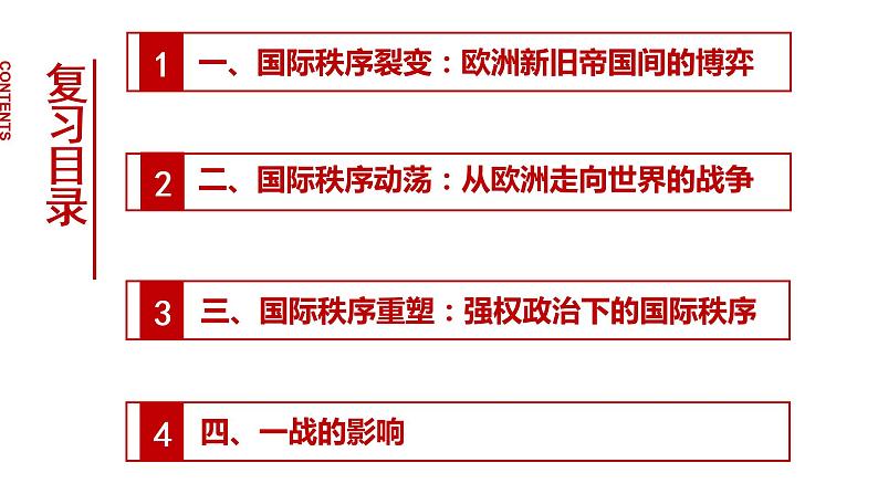 这是一份第28-1讲 第一次世界大战与战后国际秩序 课件--2024届高三统编版(2019)必修中外历史纲要下一轮复习,共38页。