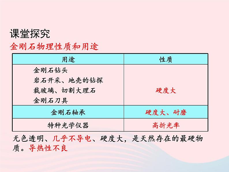 无色透明、几乎不导电、硬度大,是天然存在的最硬物质。导热性不良