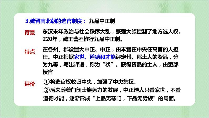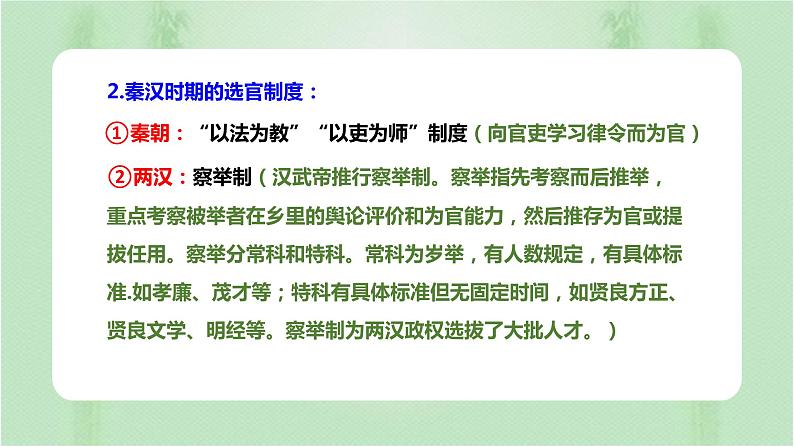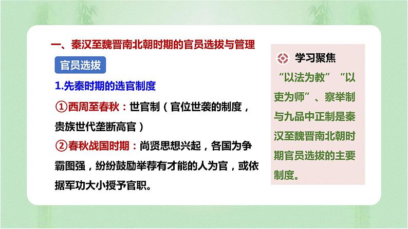 高中历史人教统编版选择性必修1 国家制度与社会治理第二单元 官员的选拔与管理第5课 中国古代官员的选拔与管理课文内容ppt课件:
