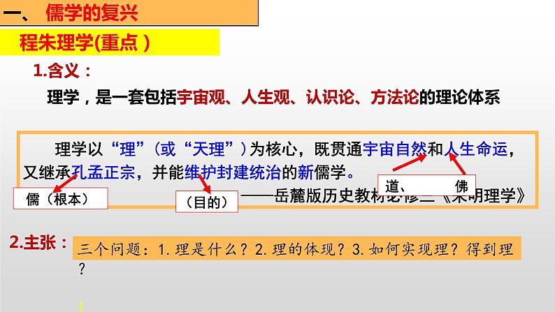 这是一份高中人教统编版第12课 辽宋夏金元的文化 课堂教学ppt课件,共25页。PPT课件主要包含了一背景,相关史料,时代赋予的机遇,二目的,三口号,“程朱理学”,儒学的复兴,理是什么,程朱理学,理的体现等内容,欢迎下载使用。