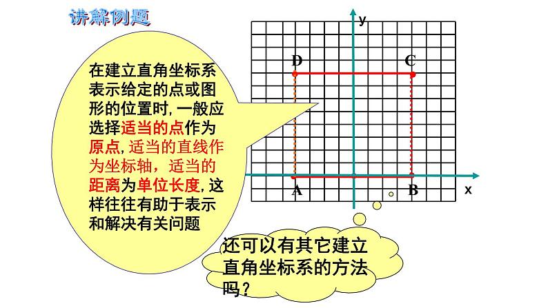 若以A为坐标原点, 建立适当的坐标系,你能写出ABCD各点的坐标吗?