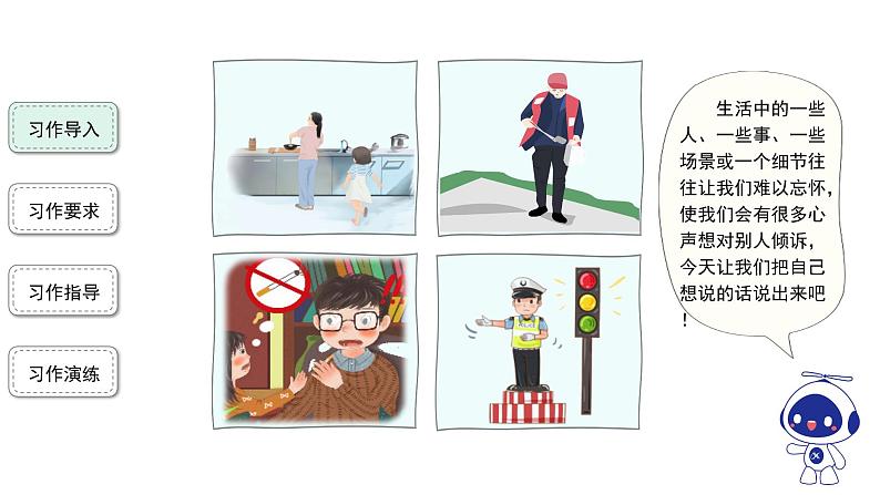 这是一份小学语文习作:我想对您说图片课件ppt,文件包含教学课件习作我想对您说第1课时精品课件pptx、教学方案习作我想对您说第1课时精品教案docx等2份课件配套教学资源,其中PPT共17页, 欢迎下载使用。