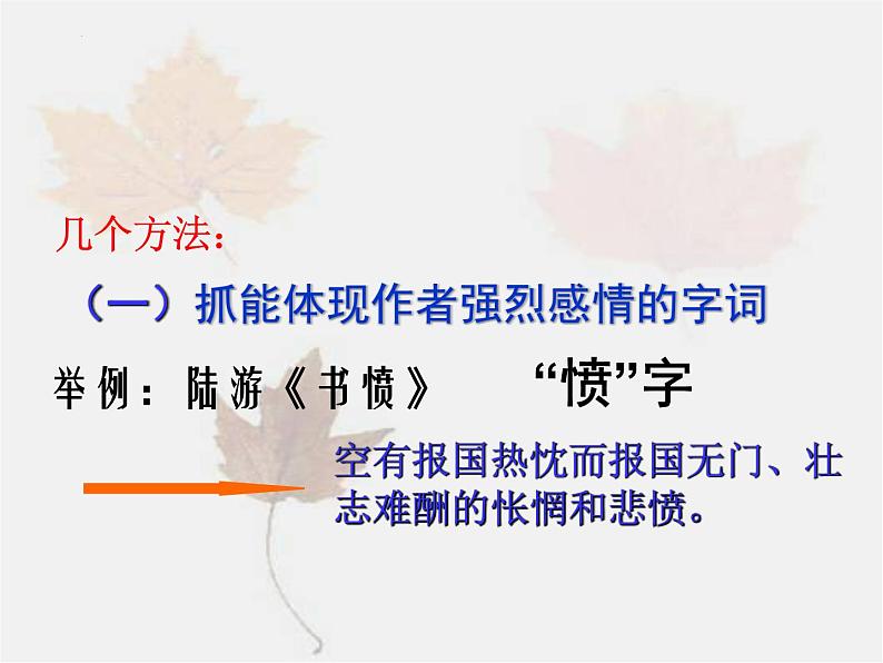 ③分析作者的思想感情。切忌空洞,要答具体。比如光答“表达了作者感伤的情怀”是不行的,应答出为什么而“感伤”。