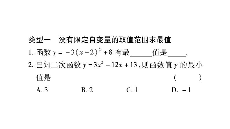 初中数学人教版九年级上册22.1.1 二次函数习题ppt课件: 这是一份初中数学人教版九年级上册22.1.1 二次函数习题ppt课件,共15页。PPT课件主要包含了-5≤m≤-2等内容,欢迎下载使用。