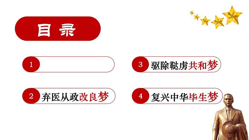 这是一份历史八年级上册第8课 革命先行者孙中山一等奖课件ppt,共24页。PPT课件主要包含了教学目标,一少年立志救人梦,从改良到革命,弃医从政改良梦,驱逐鞑虏共和梦,“三民主义”,复兴中华毕生梦,孙中山遗嘱,课堂小结等内容,欢迎下载使用。