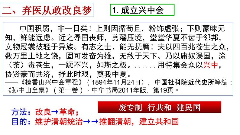 背景:孙中山开始认识到,只有推翻清朝封建统治,才能够拯救中国。