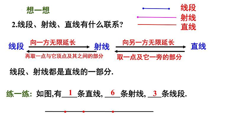 (5)若这条直线上有n个点,则共有多少条射线?多少条线段?