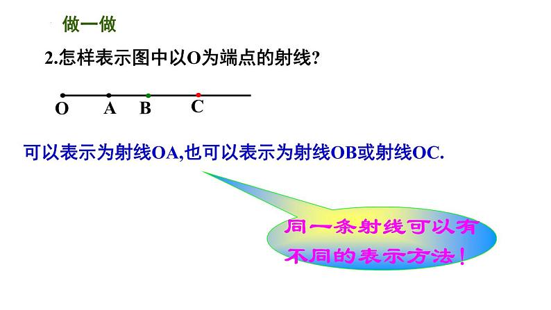 可以表示为射线OA,也可以表示为射线OB或射线OC.
