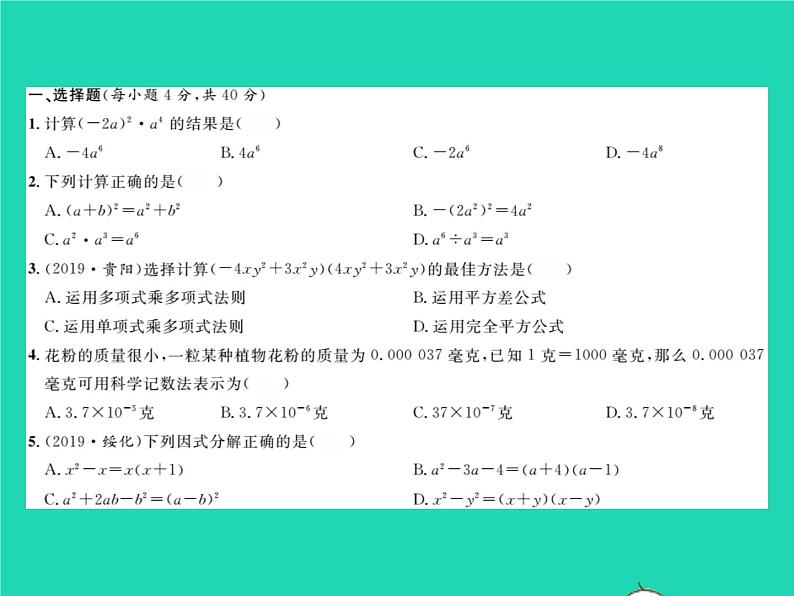 沪科版七年级下册第8章 整式乘法和因式分解综合与测试习题ppt课件