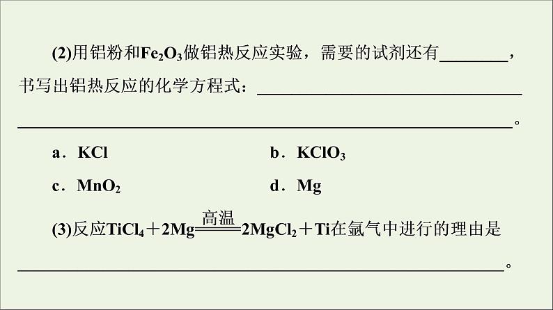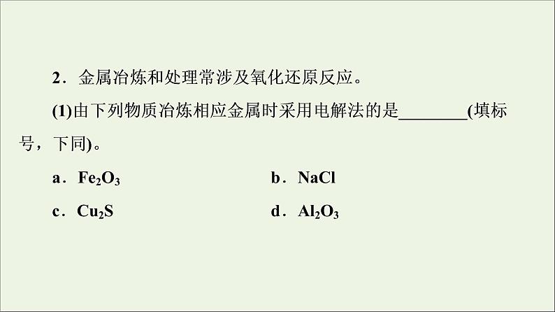这是一份化学人教版 (2019)第一节 自然资源的开发利用备课课件ppt,共45页。PPT课件主要包含了冶炼方法,答案C,二铝热反应等内容,欢迎下载使用。