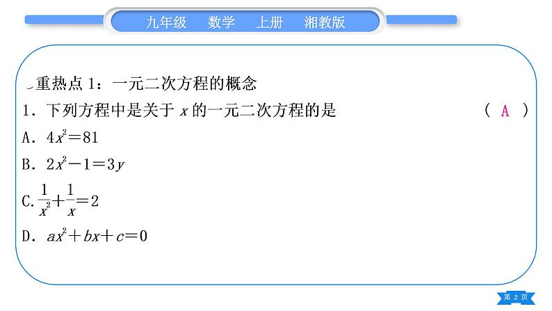 湘教版九年级上册第2章 一元二次方程综合与测试习题课件ppt