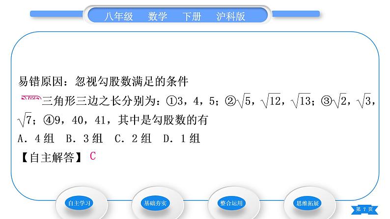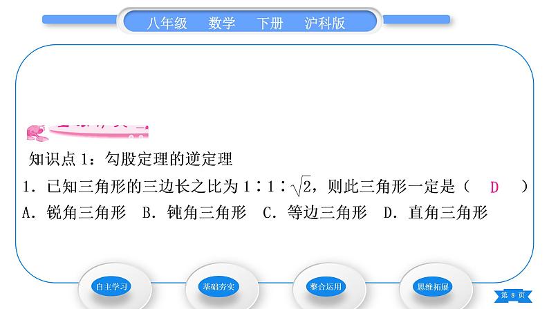 沪科版八年级下册18.2 勾股定理的逆定理习题课件ppt: 这是一份沪科版八年级下册18.2 勾股定理的逆定理习题课件ppt,共25页。PPT课件主要包含了不垂直,8km等内容,欢迎下载使用。