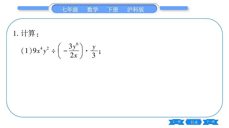 沪科版七年级数学下专项基本功训练(九)分式的运算习题课件