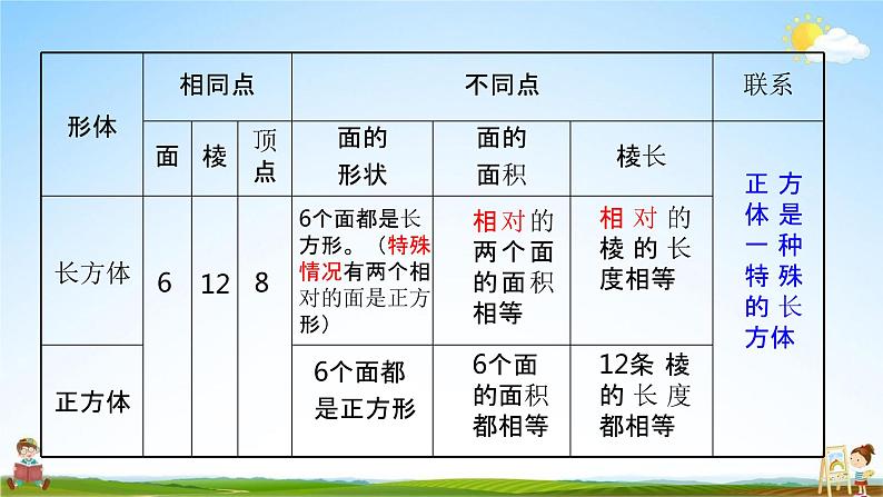 苏教版六年级上册七 整理与复习多媒体教学课件ppt: 这是一份苏教版六年级上册七 整理与复习多媒体教学课件ppt,共17页。PPT课件主要包含了图形王国,个顶点,表面积,S6a2,Vabh,Va3,毫升1立方厘米,升1立方分米,长方体,正方体等内容,欢迎下载使用。