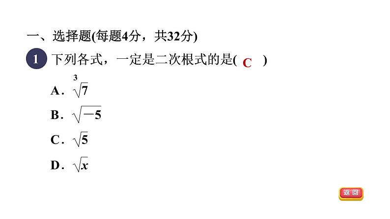 人教版数学八年级下册集训课堂测素质二次根式的性质和乘除运算课件